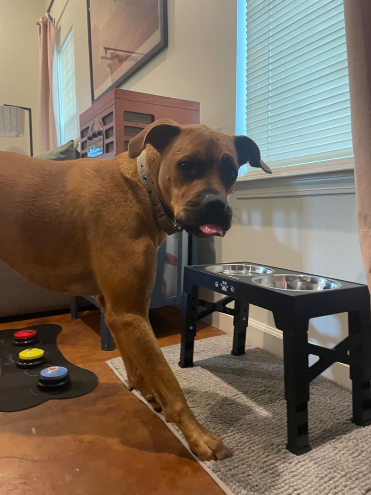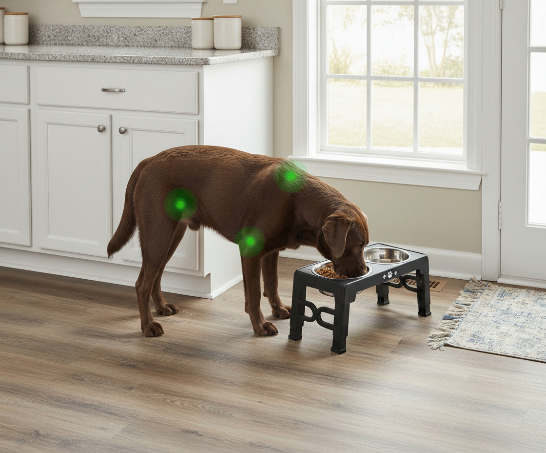 The elevation feature alone provides orthopedic benefits, and the stable base solves sliding issues. The maze can be used for treats or puzzle enrichment.